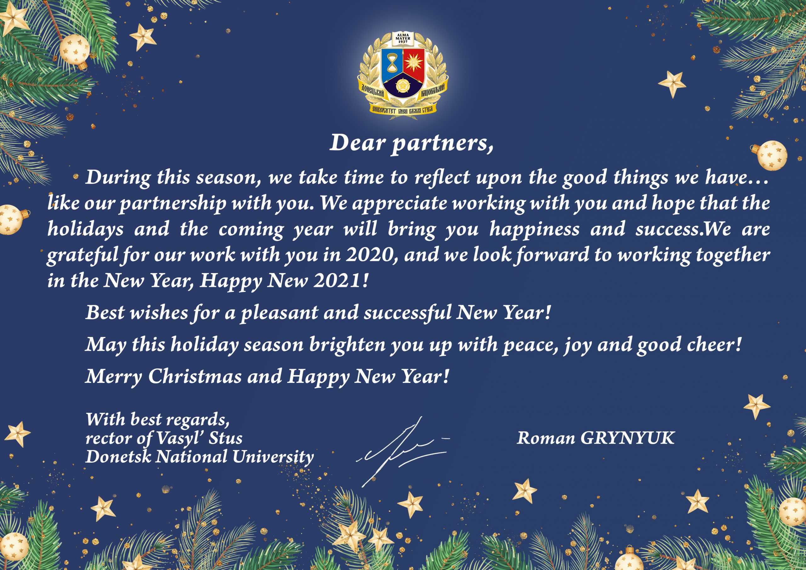 Christmas and New Year greetings for our partners